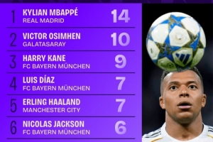 24直播网讯 欧冠联赛阶段三轮战罢,Squawka统计射正榜:姆巴佩以14次射正高居榜首,奥斯梅恩以10次位列第二,凯恩以9次位居第三。哈兰德与路易斯-迪亚斯并列第五,均有7次射正。