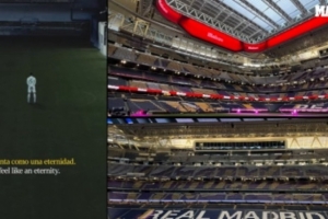 这则宣传片拍摄于伯纳乌球场可伸缩草坪的空间,一线队球员贝林厄姆、迪亚斯、阿诺德和马斯坦托诺出镜,穿梭于充满未来感和金属质感的黑暗场景中,象征着俱乐部神话起源于此,历史在此搏动。视频旁白采用了“神秘而雄心勃勃”的语言,如“伟大要求一切。它从不隐藏。它每天早晨都会奋起”,并结合新伯纳乌可伸缩顶棚的画面,配以“像太阳一样不知疲倦”的台词。